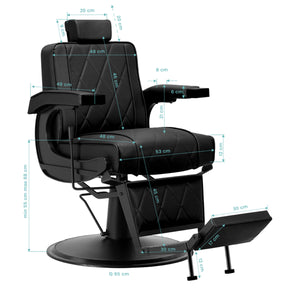 A szék masszív kerek alapkonstrukciója stabilitást és kiváló felhasználói kényelmet biztosít. Az ülés töltete, amely deformációálló habból készült, és a puha tapintású, matt felületű műbőrből készült kárpit hosszú távú tartósságot és kényelmet biztosít hosszan tartó használat során. A kárpiton lévő stílusos varrás karaktert ad, az autóipari design inspirációit idézve, ami kiemeli elegáns megjelenését. Ez a funkció a széket nedvességállóvá, tartóssá és könnyen tisztíthatóvá teszi. A fekete tónusú kárpit egyedi karaktert kölcsönöz a széknek, és minimalista stílusa lehetővé teszi, hogy zökkenőmentesen illeszkedjen bármely borbélyüzlet dekorációjához.