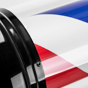 A szemet gyönyörködtető, forgó hengerrel felszerelt megvilágított plafon kiváló reklám egy borbélyüzlet számára. A jellegzetes kialakítás, piros, fehér és kék forgó elemekkel, egyedi, nemzetközileg érthető névjegykártyát hoz létre a borbélyüzlet számára. A vezetékes távirányítóval bekapcsolható a világítás és a plafon forgása is.