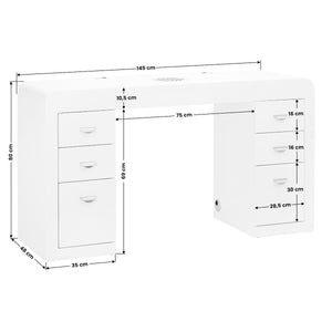 A mindkét oldalon található, három tágas fiókkal ellátott szekrények sokkal könnyebbé teszik a legszükségesebb kozmetikumok és eszközök rendszerezését és rendben tartását. Ennek köszönhetően a szükséges termékek mindig kéznél vannak, ami növeli a munka hatékonyságát. Az asztal speciális lyukakkal rendelkezik az asztallapban a szükséges eszközök kábeleinek elvezetésére, ami lehetővé teszi a munkaállomás rendjének és esztétikájának könnyű fenntartását.
