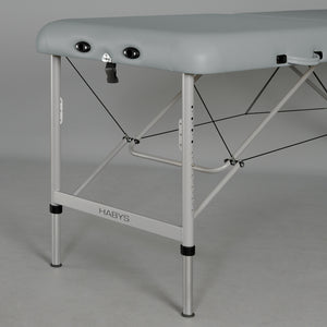 Az Aero egy kétszekciós alumínium asztal a HABYS-tól, rendkívül könnyű szerkezettel, kompakt méretekkel és egyszerű beállítással, amelyet a legmobilabb masszőrök számára hoztak létre. Kényelmesen szállítható és tökéletes légi utazáshoz.