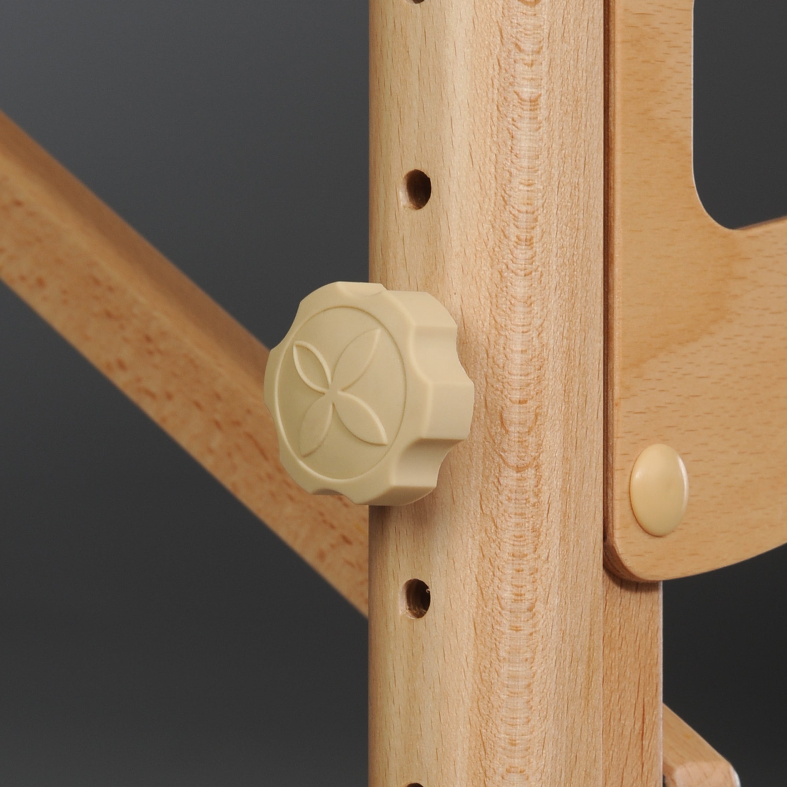 kényelmes gumi állítógomb a Habys logóval, kiegészítő filcréteggel, amely védi a fa elemeket