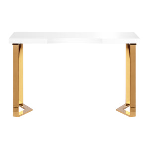 Az asztal modern formája, amely a fehér asztallapot arany, geometrikus lábakkal kombinálja, könnyedséget és eleganciát kölcsönöz a belső térnek. Kompakt, mégis stílusos formájának köszönhetően az asztal tökéletesen működik mind a kis szalonokban, mind a nagyobb, modern belső terekben.