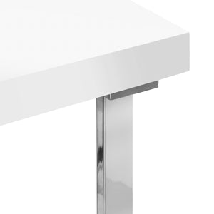 Az asztal modern formája, amely a fehér asztallapot ezüst, geometrikus lábakkal kombinálja, könnyedséget és eleganciát kölcsönöz a belső térnek. Az átgondolt részletek, mint például az integrált kábelnyílások és a kiegészítő rögzítési pontok, segítenek rendben tartani a munkaállomást. Kompakt, mégis stílusos formájának köszönhetően az asztal tökéletesen működik mind a kis terekben, mind a nagyobb, modern belső terekben.