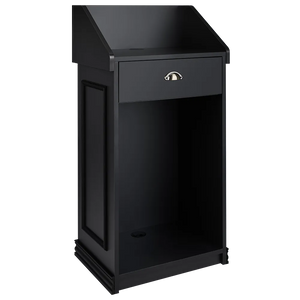 LEXUS MINI is an elegant, compact reception desk for hair and beauty salons, inspired by the Chippendale style – perfect for interiors that blend classic design with modern elements. With its decorative moulding, raised front panel and distinctive detailing, this piece brings unique character to any hair salon, barbershop or beauty studio. It looks stunning in industrial spaces with brick and concrete, as well as in rustic or eclectic interiors featuring white accents and wood. Made of matte black laminated board