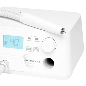 A Saeyang Marathon Cyclone-Vac – egy csúcskategóriás podológiai csiszológép elszívóval – egy speciális eszköz, amely lehetővé teszi a magas higiéniai szabványok fenntartását a rendelőben, hatékonyan védve a szakemberek és az ügyfelek egészségét. A professzionális csiszológép pedikűrhöz, különösen a podológiában végzett száraz kezelési eljárásokhoz készült, de manikűr során is jól használható. A hatékony fej az elszívóval és az intuitív kezelés jelentősen javítja a podológus munkáját, megkönnyítve a kezelések széles skálájának elvégzését.