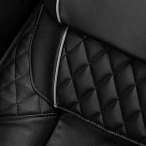 Az ergonomikusan kialakított fotel kényelmes támaszt nyújt a hátnak, a nyaknak és a lábaknak, alkalmazkodva a test természetes görbületeihez. A belső tér puha, szintetikus bőrrel van kárpitozva elegáns fekete árnyalatban, és a tartós habszivacs párnázás biztosítja a kényelmet. A felhasznált anyagok nemcsak tartósak, hanem nedvességállóak és könnyen tisztíthatók is. A precíz varrás kiemeli modern és esztétikus megjelenését, míg a szilárd konstrukció hosszú távú megbízhatóságot biztosít. A Sakura Luxury 808 modell ötvözi a funkcionalitást az időtlen dizájnnal, így tökéletesen illeszkedik a különféle belső terekbe. Ideális választás a pihenésre egy fárasztó nap után vagy egy megterhelő edzés után.