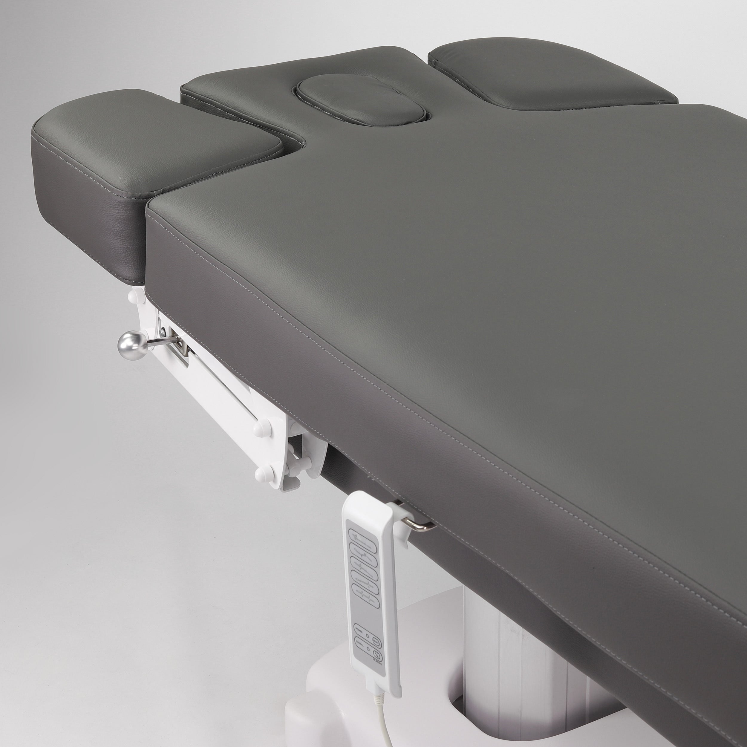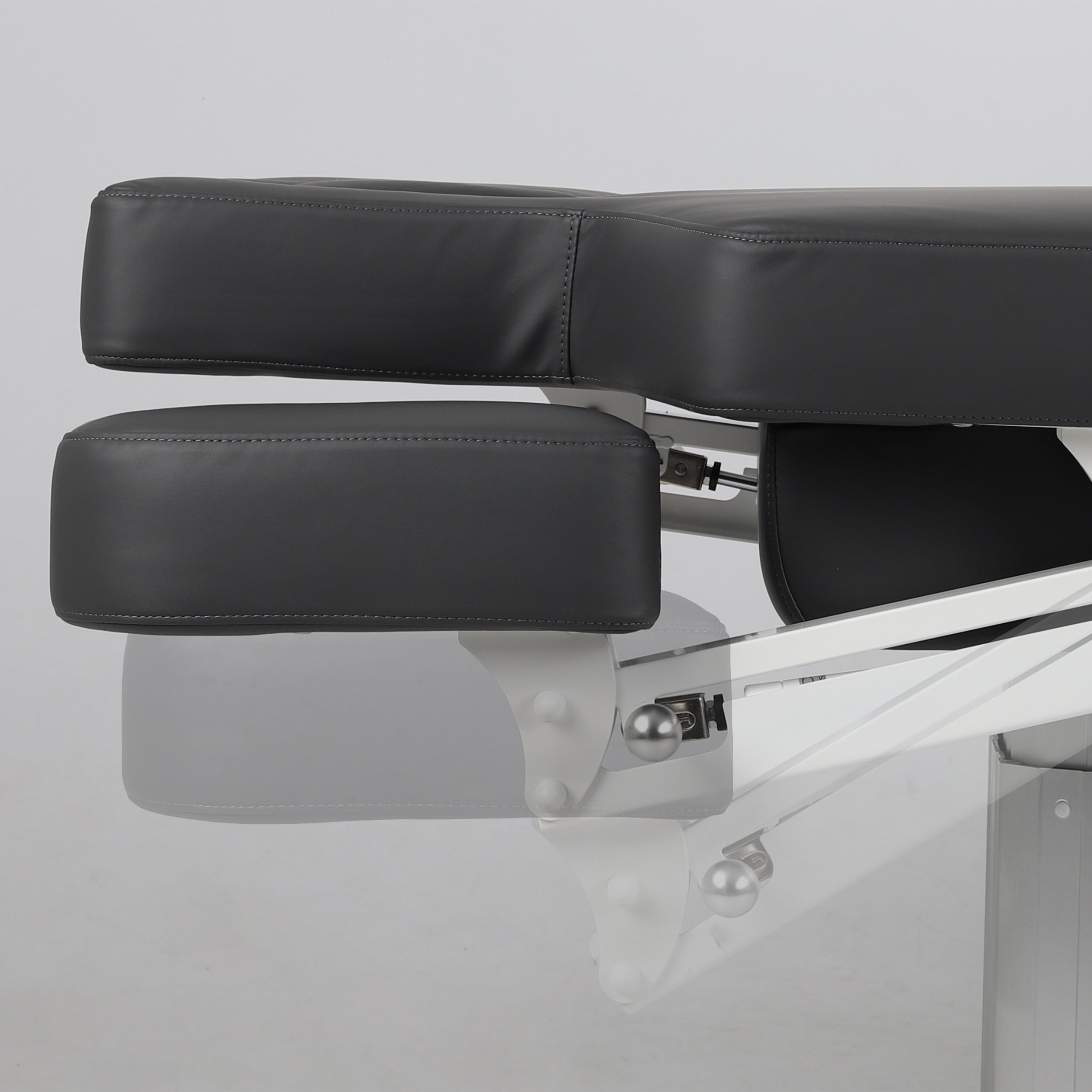 A kartámaszok sima, nagy tartományú állítása és az asztalban lévő arckivágás lehetővé teszi a kényelmes pozíció beállítását hason fekve.