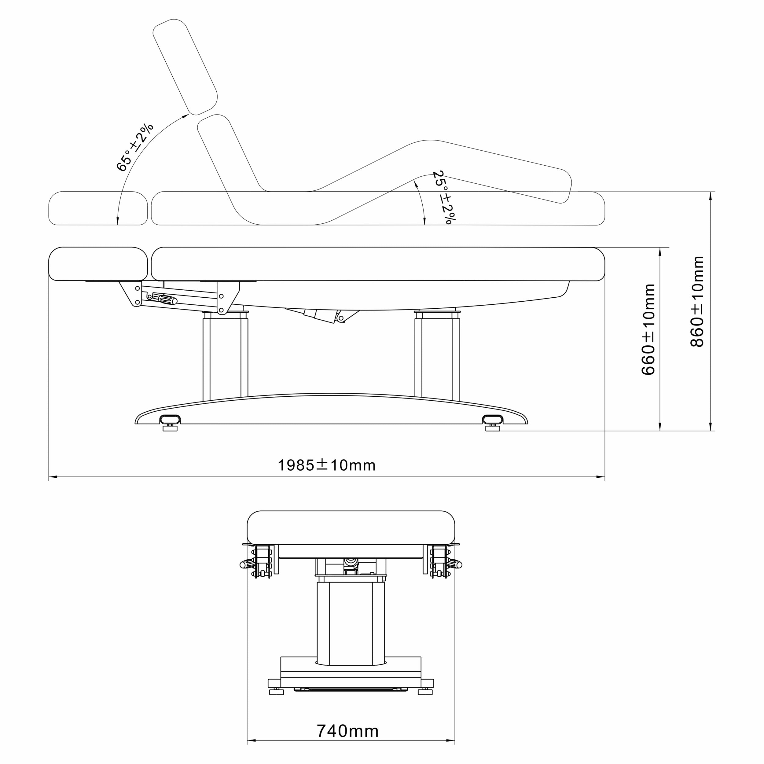 4 tartós motor és elektromos állítás kézi távirányítóval lehetővé teszi az asztallap magasságának és a fejtámla és lábtámla dőlésszögének beállítását.