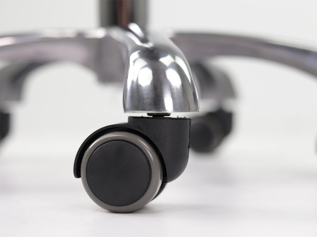Ergonomikus nyereg szék. A kontúrozott ülés optimális súlyelosztást biztosít és elősegíti a természetes testtartást. A szilárd szerkezet stabilitást és kényelmet nyújt. A kerekek sima mozgást tesznek lehetővé. A szék alumínium, krómozott vázzal rendelkezik.