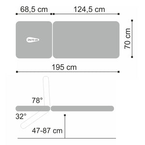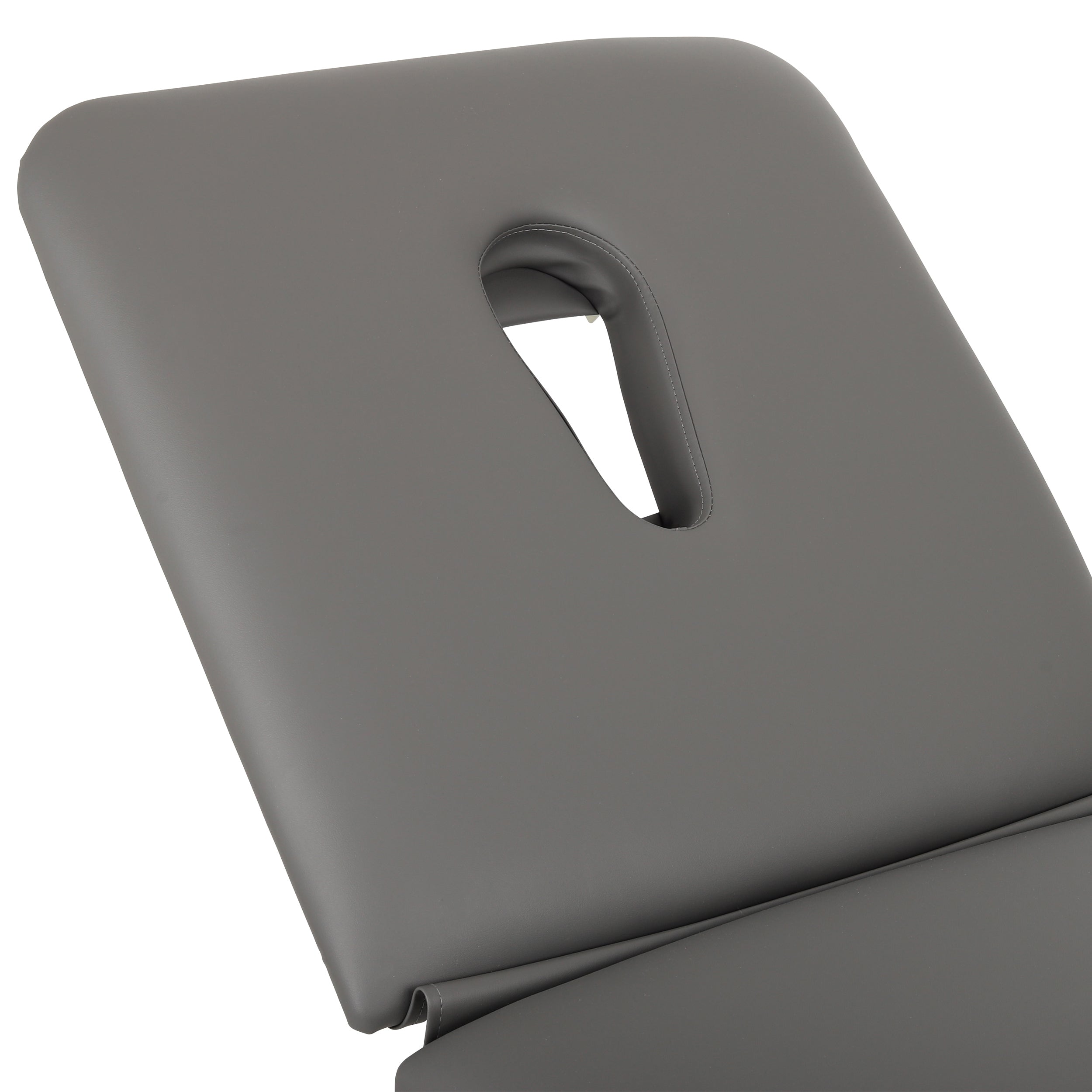 Két-szegmenses asztallap: univerzális alkalmazásra tervezve, az 195 x 70 cm méretű asztallap, állítható fejtámasszal, lehetővé teszi a páciens pozíciójának beállítását a különböző terápiás eljárásokhoz.