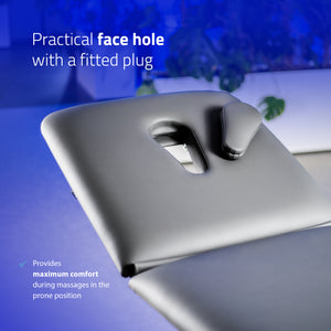 Arcnyílás dugó: lehetővé teszi a fejtámasz gyors beállítását a kényelmes háton vagy oldalt fekvéshez.