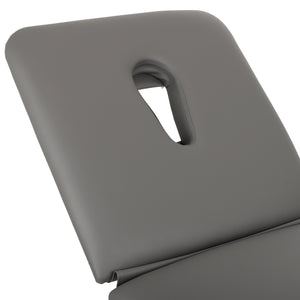 Arcnyílás: az állítható fejtámasz részben található speciálisan profilozott nyílás biztosítja az arc kényelmes elhelyezését hason fekvéskor, így a páciens ergonomikus pozíciót vehet fel anélkül, hogy el kellene fordítania a fejét.