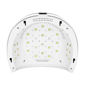 A lámpa időzítővel van felszerelve, három előre beprogramozott munkaidővel: 30 mp, 60 mp és 120 mp (az úgynevezett "Low Heat Mode"), amelyeket egy átlátszó digitális kijelzőn számolnak vissza. A beépített mozgásérzékelő automatikusan aktiválja a lámpát, amikor a kéz vagy láb ujjait alá helyezik, feltételezve a maximális 120 mp expozíciós időt. Ez a funkció akkor működik, ha nincs kiválasztva mód, és a kijelző mutatja az eltelt kikeményedési időt. Ez lehetővé teszi, hogy szabadon válassza meg az expozíció hosszát az éppen végzett stílushoz. Ezenkívül, amikor a már említett "Low Heat Mode" rendszert választja, a lámpa lassabban melegszik fel a stílus kikeményedése során, fokozatosan növelve a teljesítményét. Ez megakadályozza az égő érzést vagy a hőt az expozíció során. Ez egy pótolhatatlan funkció, különösen a zselék kikeményedésekor, ami gyakran okoz kellemetlenséget a piacon kapható más lámpák használatakor.